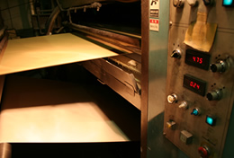 段ボールのシートは、中芯原紙を波状に成型し、それに表と裏2枚のライナーを貼り合わせてつくります。そのための製造マシンをコルゲーター(コルゲート・マシン)といいます。