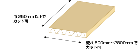 巾方向は最小250mm、流れ方向は最小500mmまでカットすることができます。